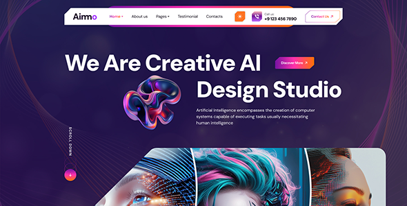 Aimo based on in-depth research portfolio, creative agency, business, corporate, industrial, marketing site, IT solutions, AI agency and startup, modern technology and modern agency websites related ai agency field to deliver all needed layouts and blocks.